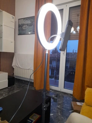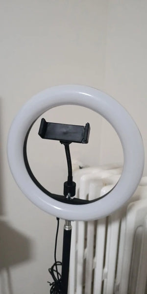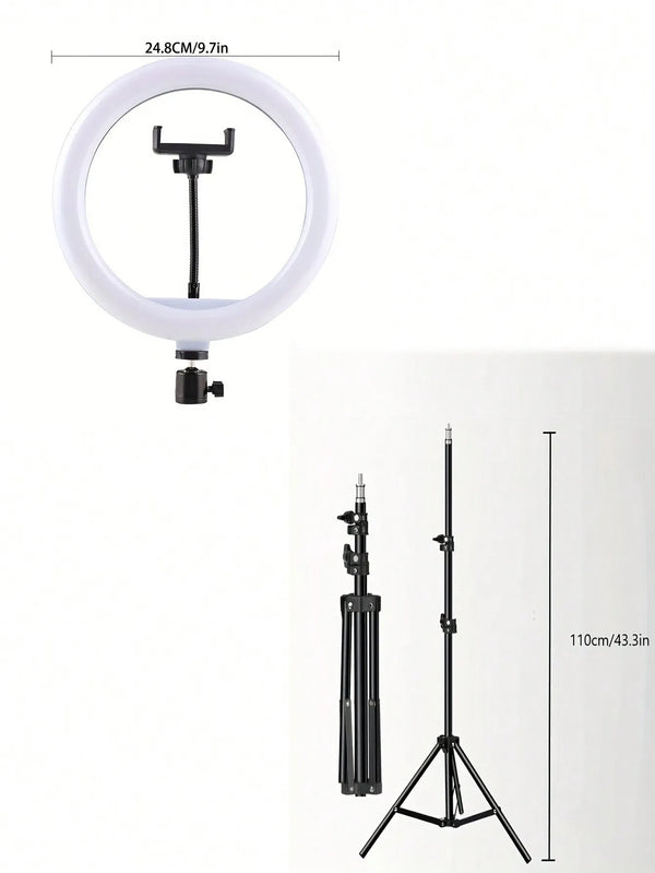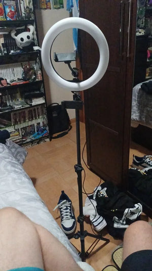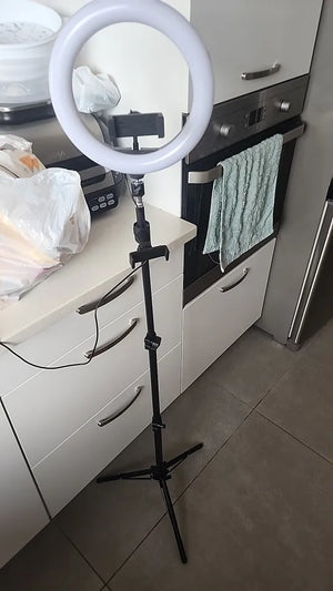 The 10-inch ring light adds soft, even illumination that lifts facial features and reduces harsh shadows. See clearer skin tones and sharper detail in night streams or indoor setups, so your videos look professional without complex lighting rigs.
