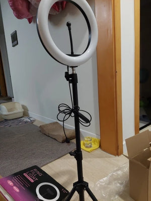 Yes. The 10-inch ring light provides soft, even brightness that improves facial detail and removes harsh shadows for night or low-light indoor recordings.